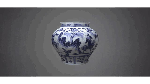 记者体验了一把,通过VR眼镜欣赏了元青花人物故事罐《鬼谷子下山》,仔细欣赏了不同角度,一行人与山色树石构成了一幅壮观而又优美的山水人物画卷。整个青花纹饰呈色浓艳,画面饱满,疏密有致,主次分明,浑然一体。人物刻画流畅自然,神韵十足,山石皴染酣畅淋漓,笔笔精到,十分完美。特别是通过手柄控制,可以将陶瓷罐拿在手上,体验感十足。